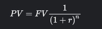 The present value (PV) of an investment refers to the current worth of a future sum of money, taking into consideration the time value of money. In other words, it’s the amount that needs to be invested today to achieve a specific future value, considering an assumed interest rate or discount rate. The formula for calculating the present value of an investment is: