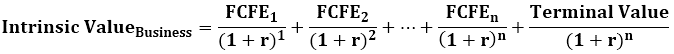 Hence Intrinsic value is the present value of all future cash flows from a share. The intrinsic value of a business is divided by the number of shares to arrive at an intrinsic value per share. Intrinsic value for a business can be arrived at using following formula: –